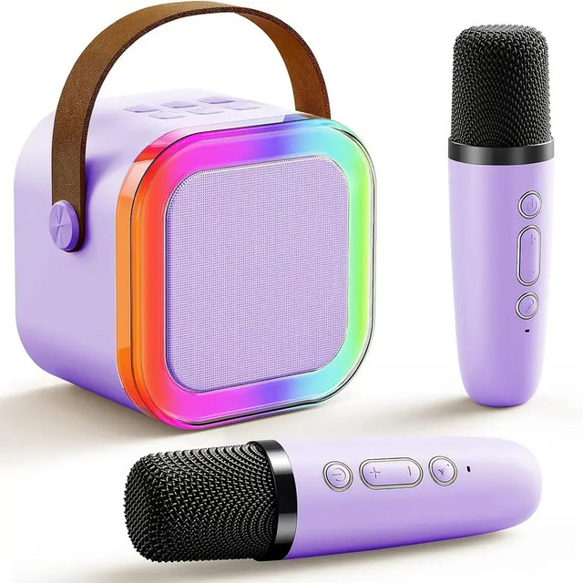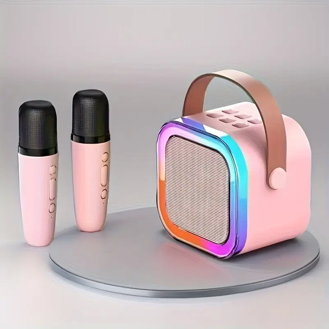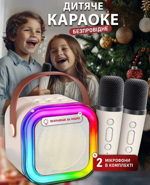 Бездротова Bluetooth-колонка з караоке, 2 мікрофони, підсвітка, радіо, акумуляторна портативна акустика