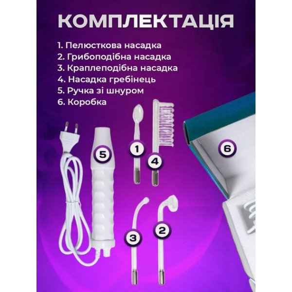 Дарсонваль для обличчя та волосся з 4 насадками, компактний косметологічний прилад для дому