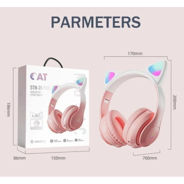 Дитячі бездротові навушники STN-28 PRO з котячими вушками та LED-підсвіткою, Bluetooth 5.3, складані