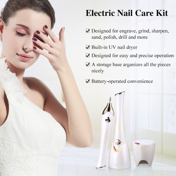 Електрична пилка для нігтів TOUCHBeauty TB-1335 набір 12 предметів з УФ-сушаркою для манікюру та педикюру