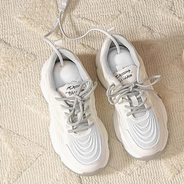 Сушарка працює від мережі 220V, має оптимальну температуру нагрівання повітря — 48°C, що безпечно для будь-яких типів взуття, включно зі шкіряним і спортивним. Легка вага (лише 220 г) і зручний кабель завдовжки 140 см роблять її простою та комфортною у використанні.