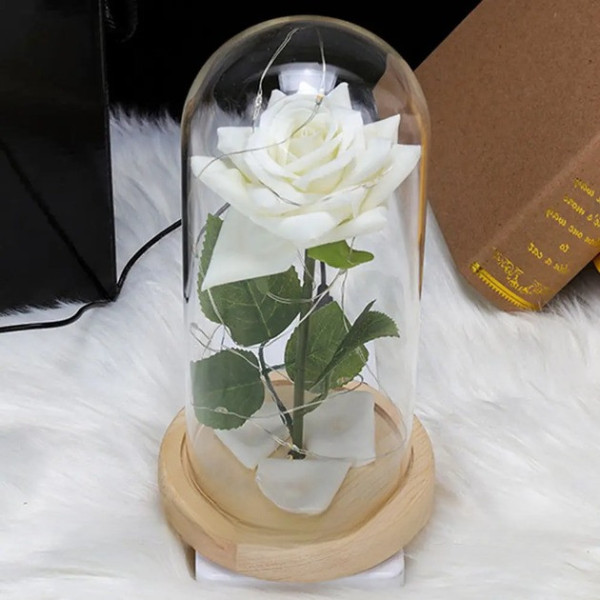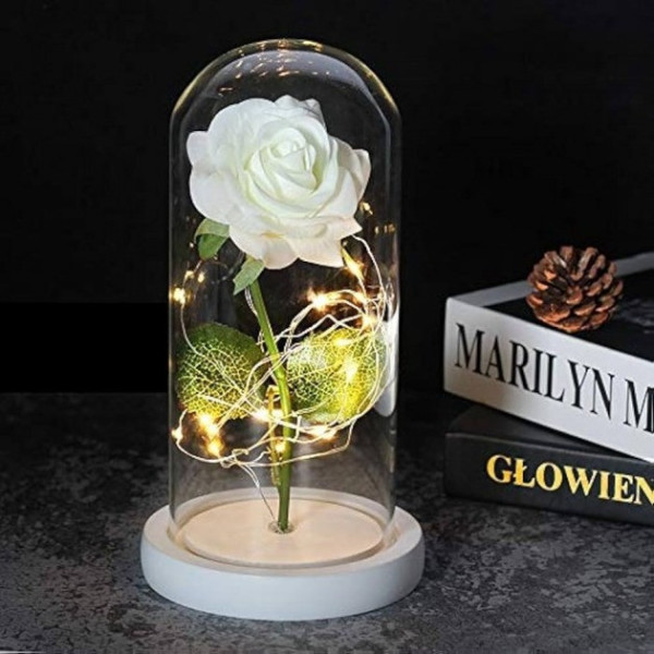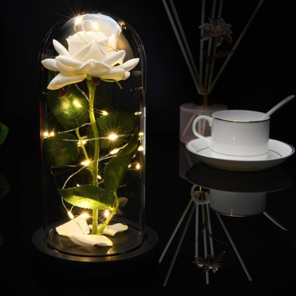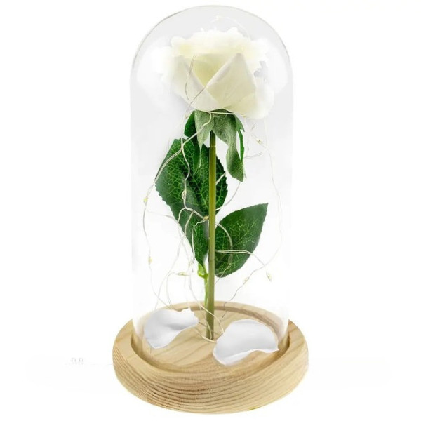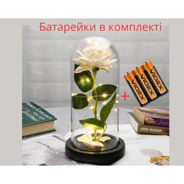 Світлодіодний нічник Троянда в скляній колбі біла LED декоративна лампа на батарейках
