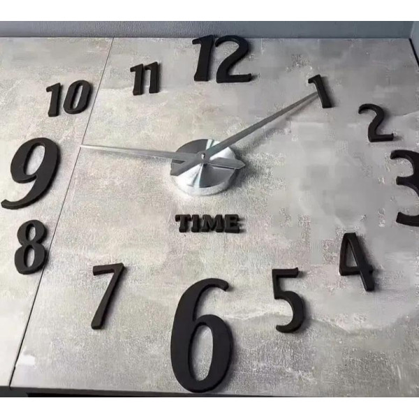 Великі настінні 3D-годинник ZH1725 120 см, кварцові, чорний і сірий, дизайнерський для інтер'єру