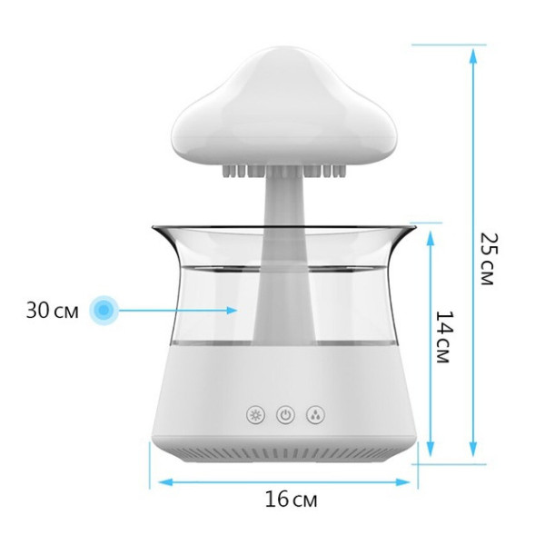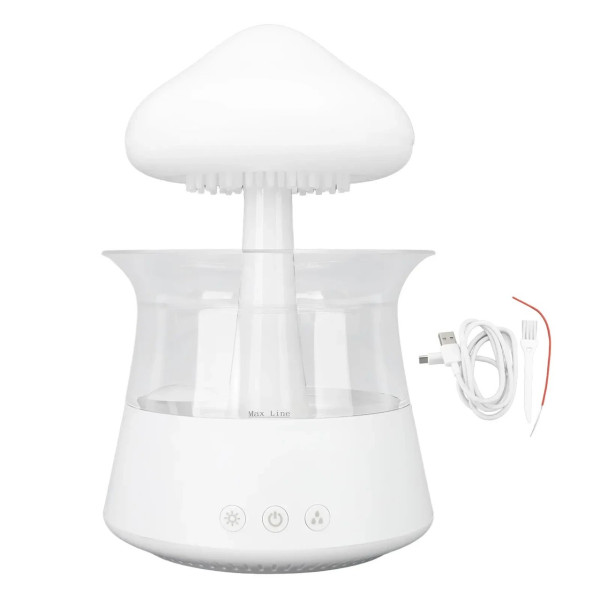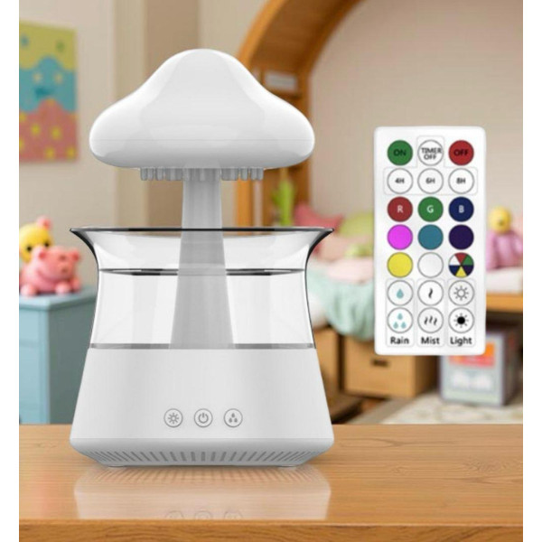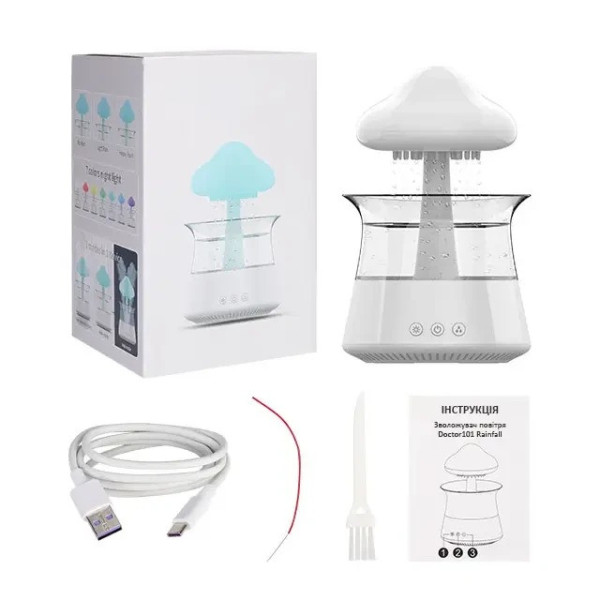 Doctor-101 Rainfall поєднує в собі зволожувач, нічник і декоративний елемент. Пристрій створений у формі грибочка або хмари, що надає інтер'єру затишок і стиль. Ефект дощу, що капає, створює природний білий шум, який допомагає розслабитися, зосередитися на роботі або краще спати.