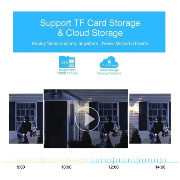 Поворотний механізм дає змогу охоплювати до 355° по горизонталі та 90° по вертикалі, мізуючи «сліпи зони» й контролюючи велику площу. Пристрій підтримує виявлення руху з миттєвими повідомленнями через застосунок V380 Pro, а вбудований мікрофон і динамік забезпечують двосторонній зв'язок для спілкування або відлякування сторонніх.