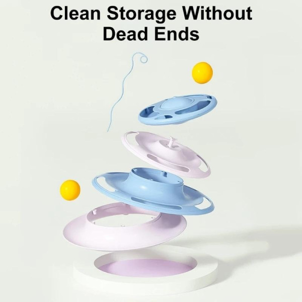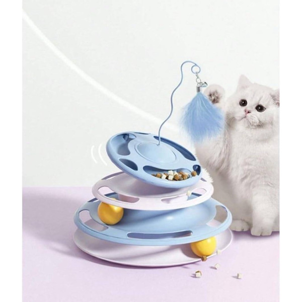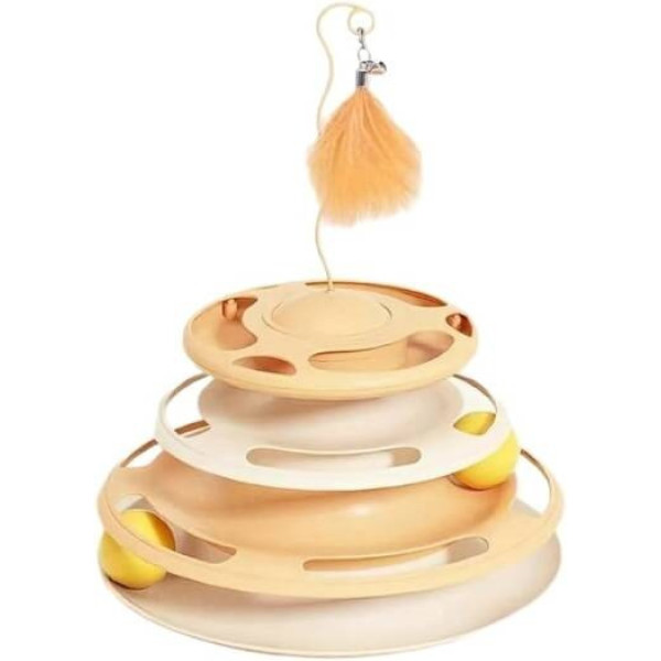 Інтерактивний ігровий трек для кішок із 4 рівнями, м'ячиками та пером на пружинці для активної гри