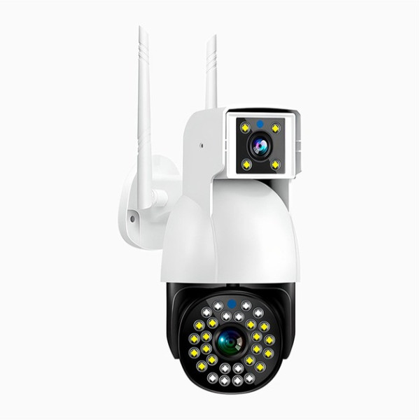 Dual Camera P12 WI-FI V380PRO 8760 — це пристрій для відеоспостереження, який має дві камери з роздільною здатністю 3 мегапікселі кожна. Камера підтримує бездротове під'єднання до мережі Wi-Fi та може передавати зображення на смартфон або комп'ютер за допомогою програми V380PRO.