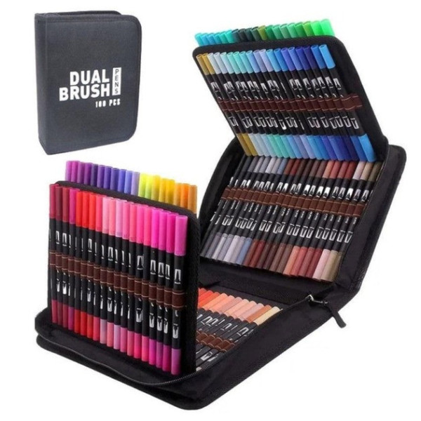 Маркери подвійні 100 шт. на водній основі в практичному кейсі