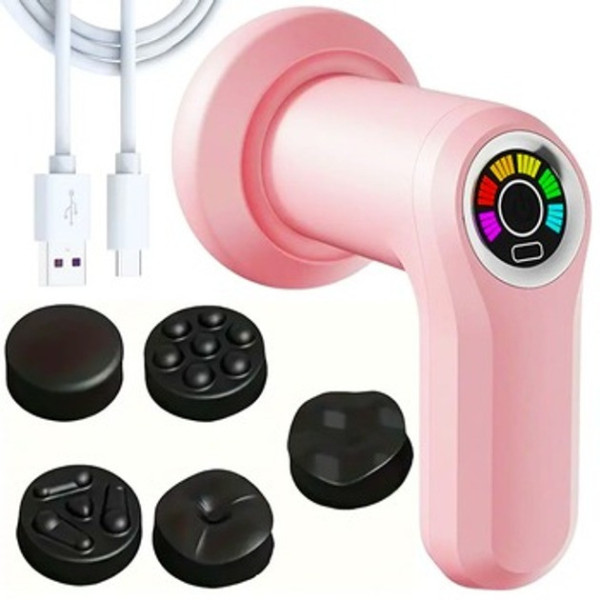 Масажер SL-630/YX-720 ручний акумуляторний з п'ятьма насадками рожево-білий