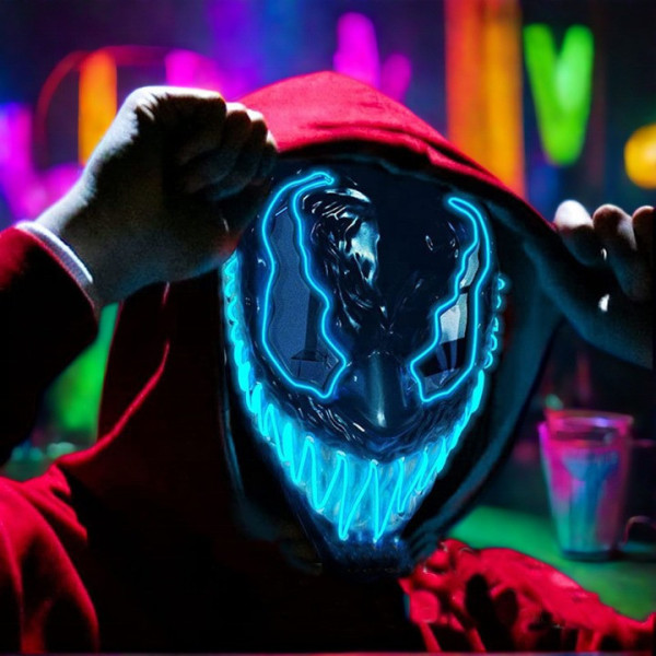 Маска неонова синя Веном із підсвіткою Aurora для карнавалу та косплею