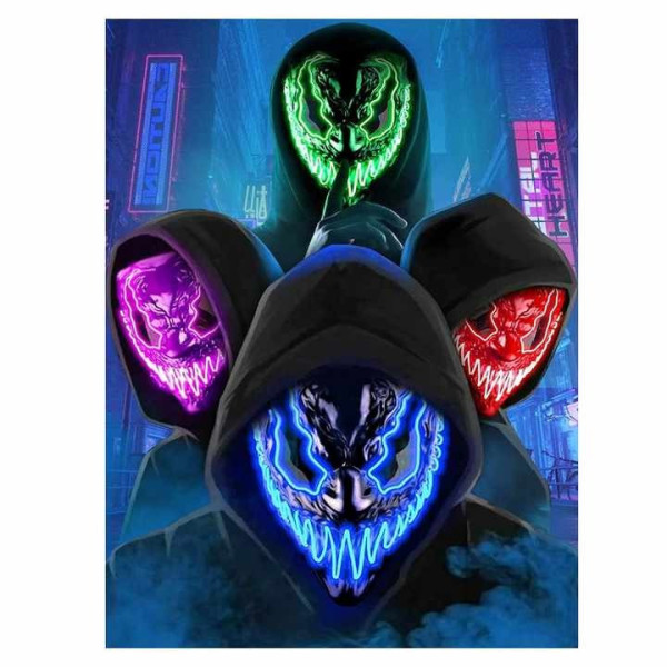 Безпечний EL-кабель: Маска обладнана безпечним для здоров'я електричним дротом, який створює яскраве світіння без перегрівання.