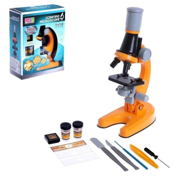 Комплектація: Мікроскоп — 1, Пляшечки — 2, Коробочка — 1, Образи — 3, Набір інструментів — пінцет, скальпель, склепіння та флакони.