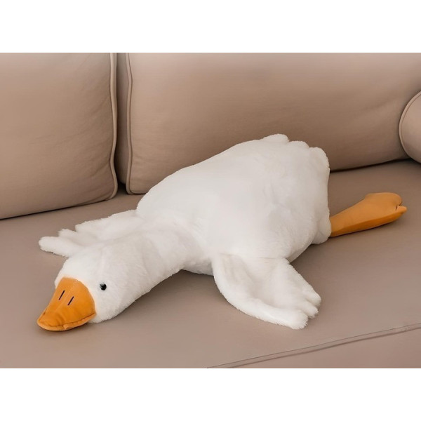 М'яка іграшка у формі білого гусака завдовжки 110 см стане чудовим другом для дітей і дорослих. Іграшка виготовлена з приємного на дотик матеріалу, а яскравий жовтогарячий ніс і виразні чорні очі роблять її привабливою і дружньою.