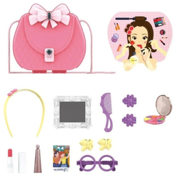 Набір дитячої косметики Kids Pretend Toy Bag з дзеркалом і сумочкою рожевий, розвивальна іграшка