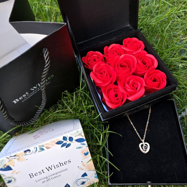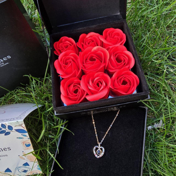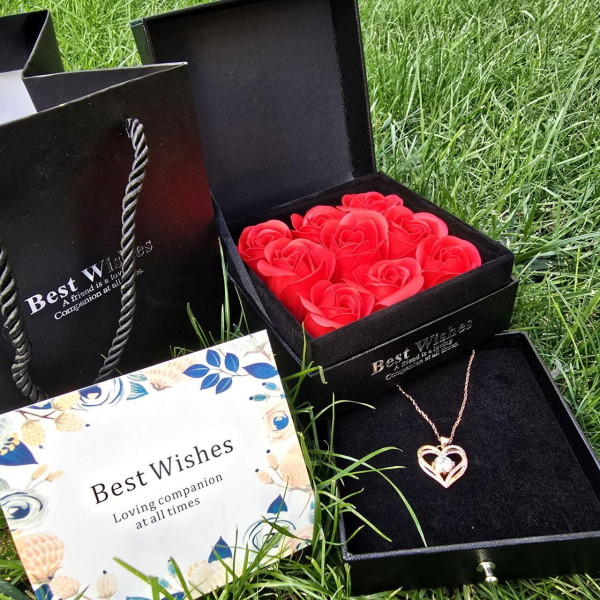 Набір мильних троянд Best Wishes 9 штук у чорній подарунковій коробці з кулоном