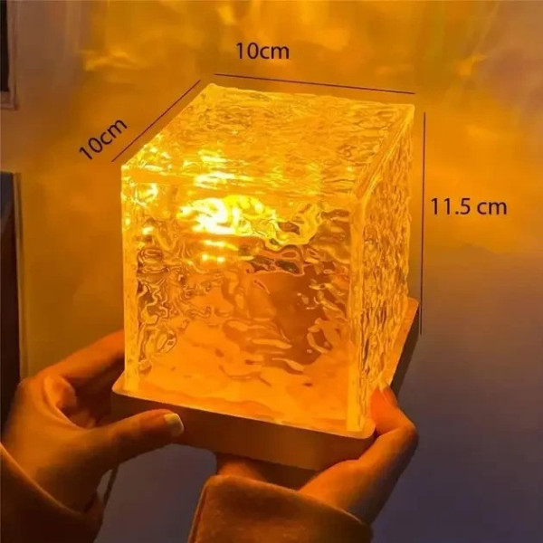 Нічник-проєктор КУБ — це світильник, який наповнює кімнату м'яким сяйвом і створює незвичайну атмосферу. Його світлові ефекти імітують водну бриж і північне сяйво, перетворюючи звичайне освітлення на стильний елемент декору.