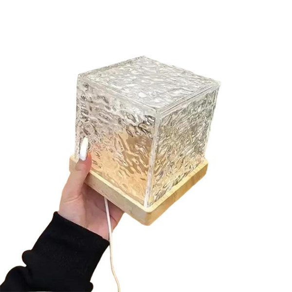Настільний нічник-проєктор КУБ з RGB-підсвіткою й ефектом північного сяйва, лампа з акрилу та дерева з USB-живленням