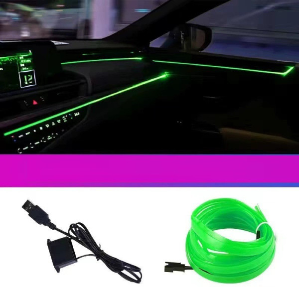 Неонова підсвітка салону авто, гнучкий холодний неон з кантом 5 м, зелена стрічка 12 В з USB-інвертором