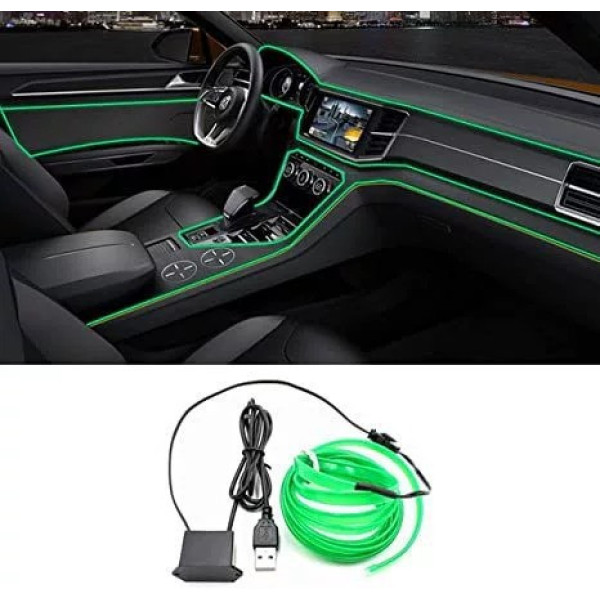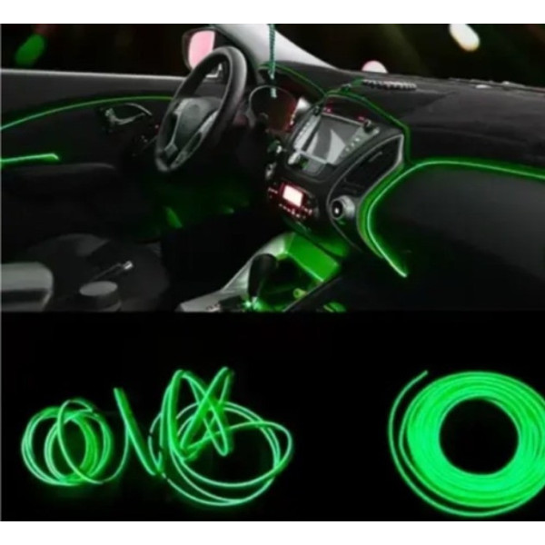 Додайте стиль і атмосферу в салон вашого автомобіля за допомогою гнучкої неонової підсвітки завдовжки 5 метрів. Декоративна електролюмінесцентна стрічка легко встановлюється в щілини між елементами панелі, дверей і консолі, створюючи м'яке зелене світіння на 360°.