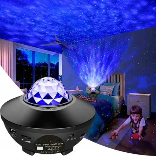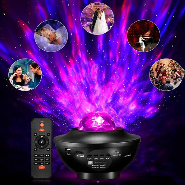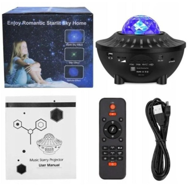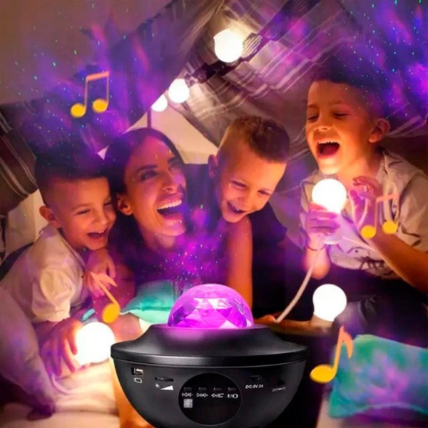 Завдяки вбудованому Bluetooth-модулю та динаміку проєктор можна під'єднувати до телефона або іншого пристрою, щоб слухати музику. Світлові ефекти можуть синхронізуватися з ритмом, перетворюючи лампу на ідеальний атрибут для вечірок, медитацій або романтичних вечорів.