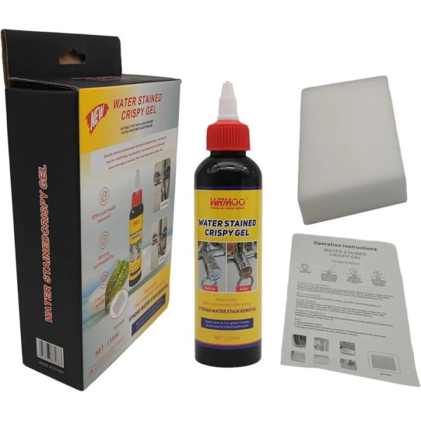 Очисний гель WRMOO 150 мл із губкою — це ефективний і зручний засіб для видалення застарілих плям від води, вапняного нальоту та мильних відкладень на кухні та у ванній. Завдяки потужній гелевій формулі засіб глибоко проникає в забруднення, швидко розчиняючи навіть найстійкіші відкладення й повертаючи поверхням їх первинний блиск.