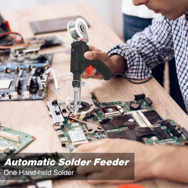Паяльник із автоматичною подачею олова — це інструмент, який значно спрощує процес пайки, роблячи його швидким, точним і комфортним. Завдяки інтегрованій системі подачі олова, цей паяльник дозволяє рівномірно дозувати припій, забезпечуючи акуратні та надійні з’єднання навіть у важкодоступних місцях.