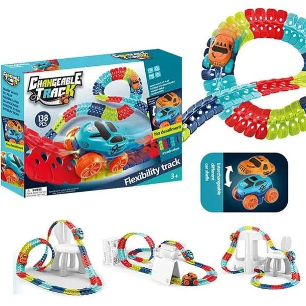 Перегоновий гнучкий трек Cheangeble Track з машинкою в комплекті 138 деталей