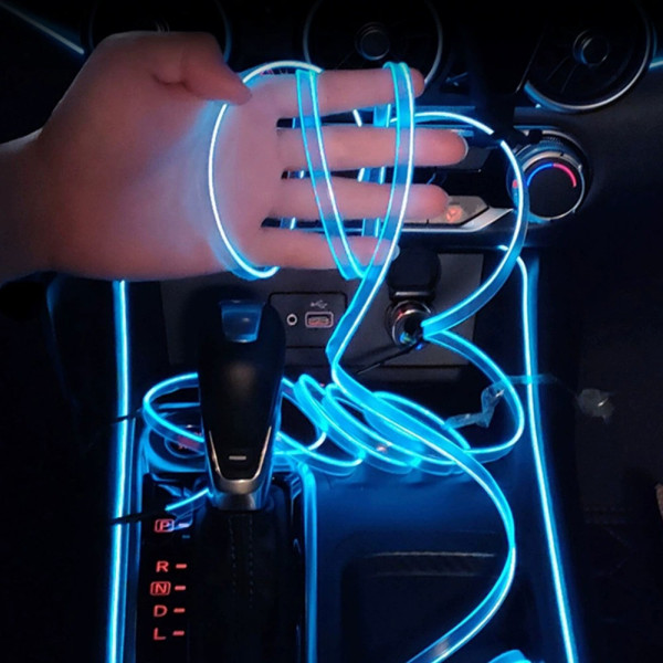 Підсвітка неонова гнучка для салону авто 5 м блакитна холодна з USB живленням