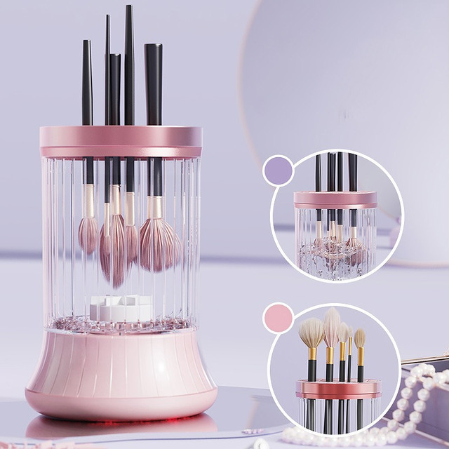 Портативна щітка для чищення пензлів для макіяжу Rayhomer із сенсорним керуванням і USB, 300 мл рожевий