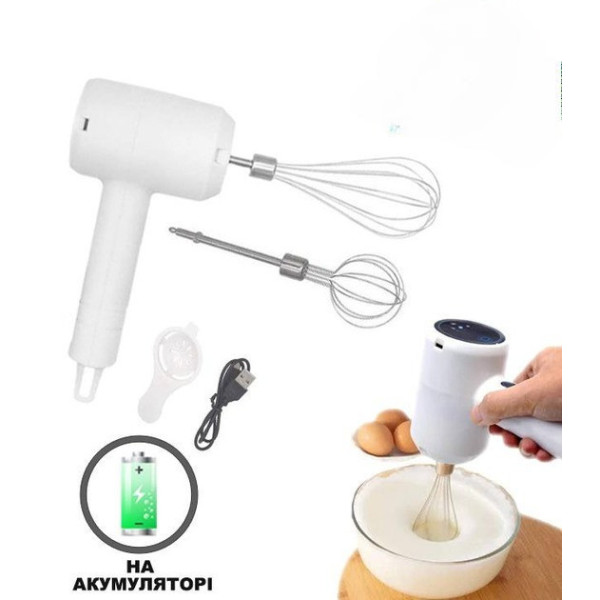 Портативний електричний ручний міксер на акумуляторі USB з вінчиками з неіржавкої сталі