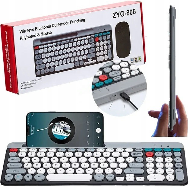Комплект клавиатуры и мыши ZYG 806 — это удобное решение для офиса, дома и поездок. Благодаря поддержке сразу двух способов подключения — Bluetooth и 2.4 ГГц через USB-ресивер — набор совместим с ноутбуками, ПК, смартфонами и планшетами.