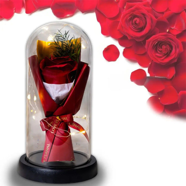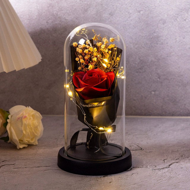 - LED-подсветка: Встроенная подсветка добавляет волшебный свет и акцентирует внимание на букете, создавая романтическую атмосферу.