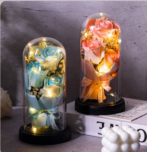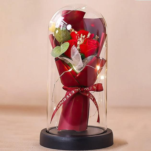 Букет из мыла 3 Роз в колбе с LED подсветкой KR-04 декоративное изделие для интерьера и подарка