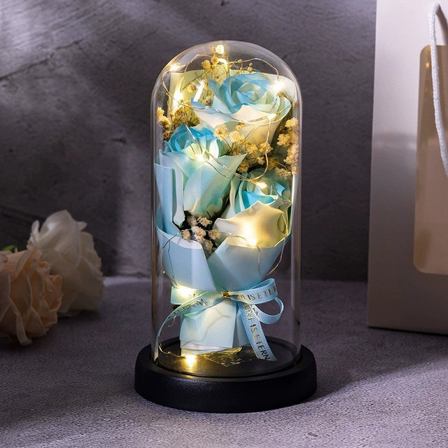 Букет из мыла 3 Роз в колбе с LED подсветкой KR-04 — это стильное декоративное украшение, которое сочетает в себе красоту цветов и мягкое атмосферное освещение. Искусственные розы выполнены из мыла, выглядят как настоящие и не требуют ухода. Прозрачная колба защищает букет от пыли и повреждений, а встроенная LED-подсветка придает мягкое, теплое свечение, создавая уютную и романтическую атмосферу в любом помещении.