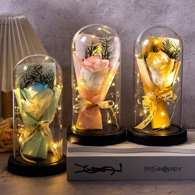 Букет из мыла в колбе с LED-подсветкой KR-02 декоративный светильник, мыльные цветы, подарок для интерьера