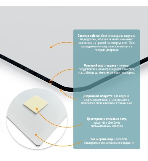 Безопасные материалы: нетоксичный зеркальный акрил, не имеет запаха и не бьется.