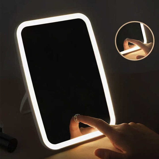 Зеркало настольное макияжное с LED подсветкой и сенсорным выключателем на аккумуляторе