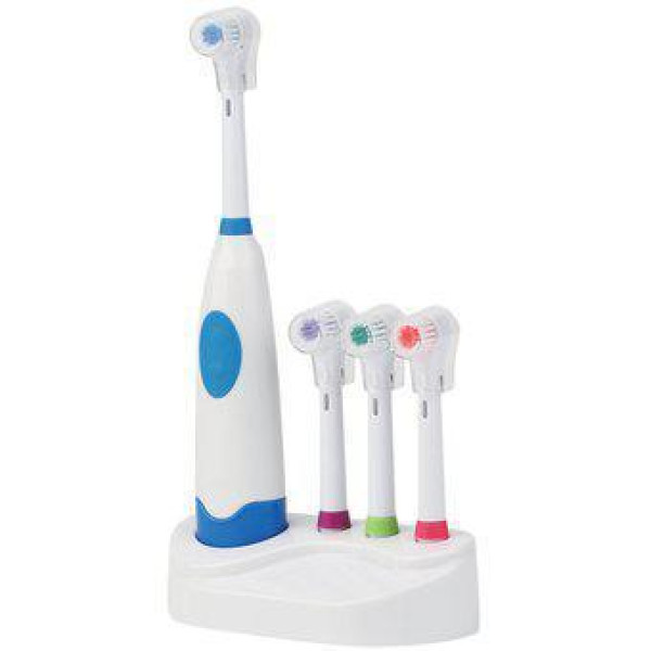 Описание продукта: Электрическая зубная щетка Electric ToothBrush предлагает удаление вдвое больше налета, чем обычная ручная зубная щетка. Идеально подходит для путешествий, кемпинга, автомобиля или грузовика и т. д. Разноцветные насадки позволяют всей семье пользоваться одной щеткой. В комплекте поставляются 4 насадки. Работает от 2 пальчиковых батареек типа AA.