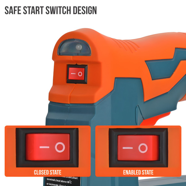 Благодаря встроенному аккумулятору и компактным размерам электростеплер удобен в использовании и не требует подключения к сети. Управление осуществляется кнопкой пуска, расположенной под большим пальцем, что делает работу максимально комфортной.