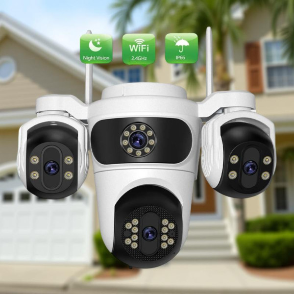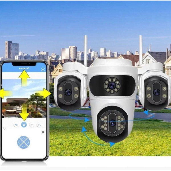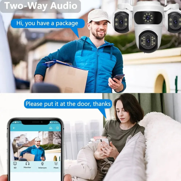 Камера имеет степень защиты IP66, что обеспечивает надежную работу как внутри помещений, так и на улице, даже при неблагоприятных погодных условиях. Возможность 4× цифрового увеличения позволяет рассмотреть детали на большом расстоянии, а встроенный микрофон и динамик обеспечивают двустороннюю аудиосвязь.
