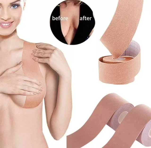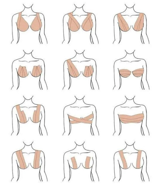 Кинезиотейп для груди выполняет функцию невидимого бюстгальтера-пластыри, позволяя создавать соблазнительный пуш-ап эффект. Подходит для платьев с открытой спиной, нарядов с глубоким декольте и прозрачных тканей, подчеркивая естественную красоту и линию груди.