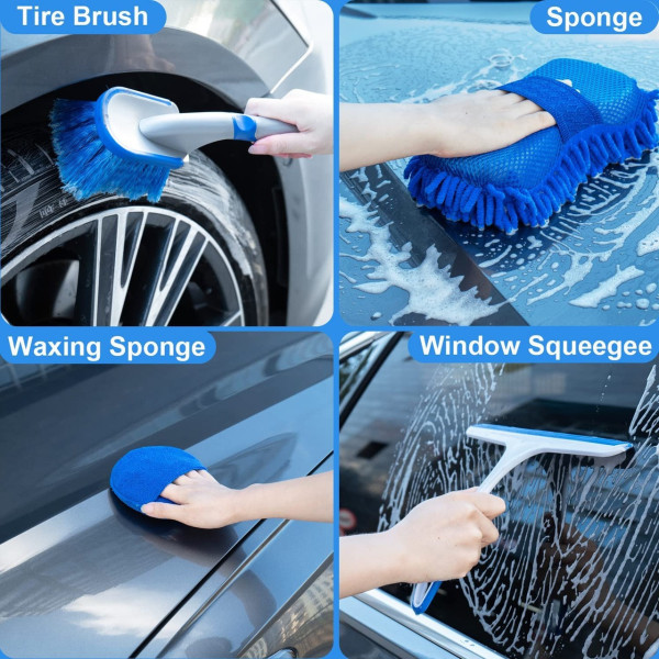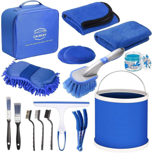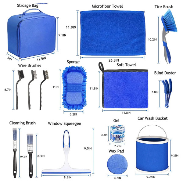 Комплект для мытья и уборки автомобиля CS-003, 14 предметов в сумке, голубой