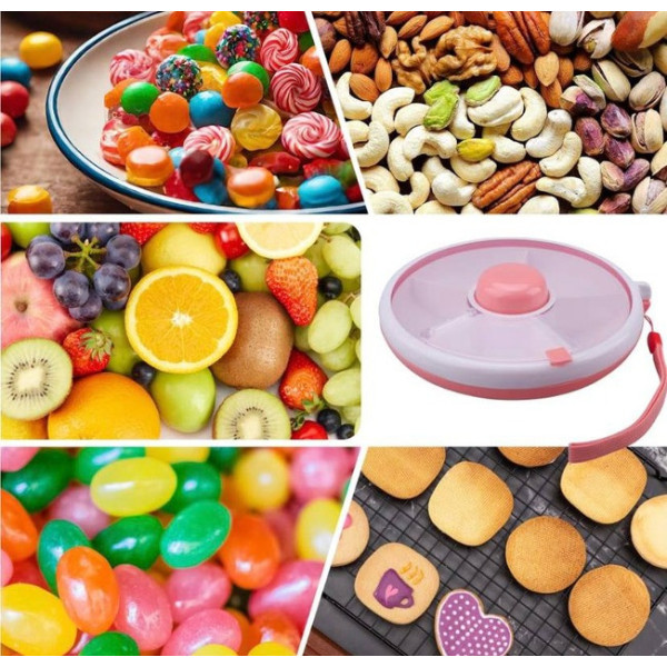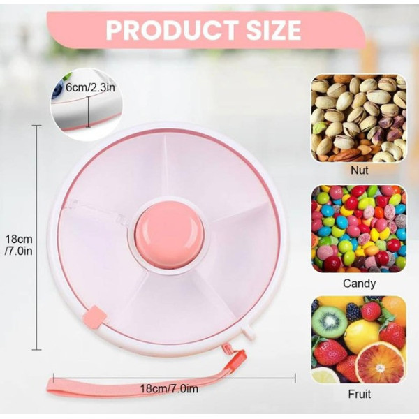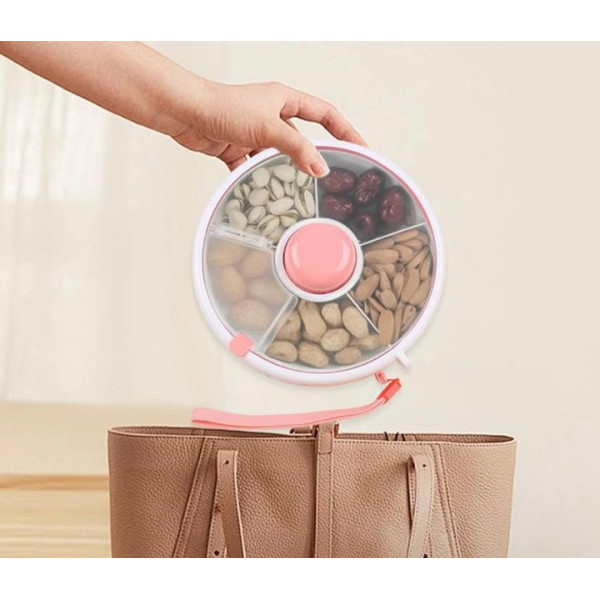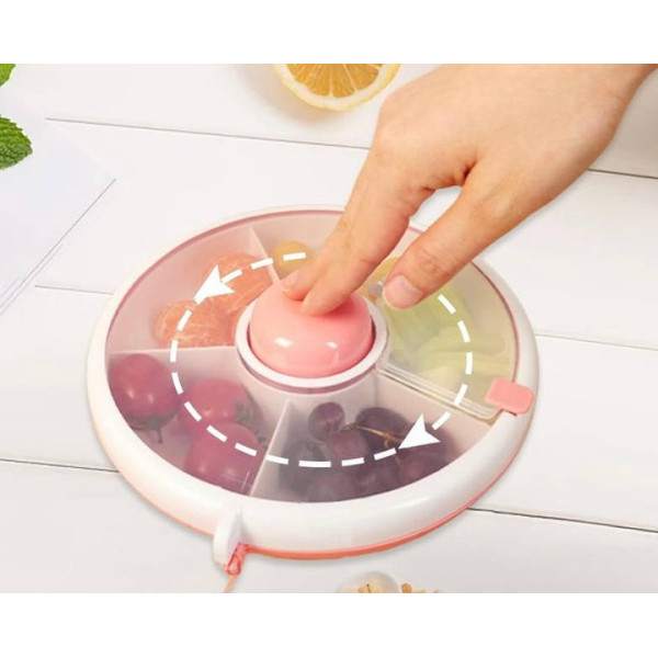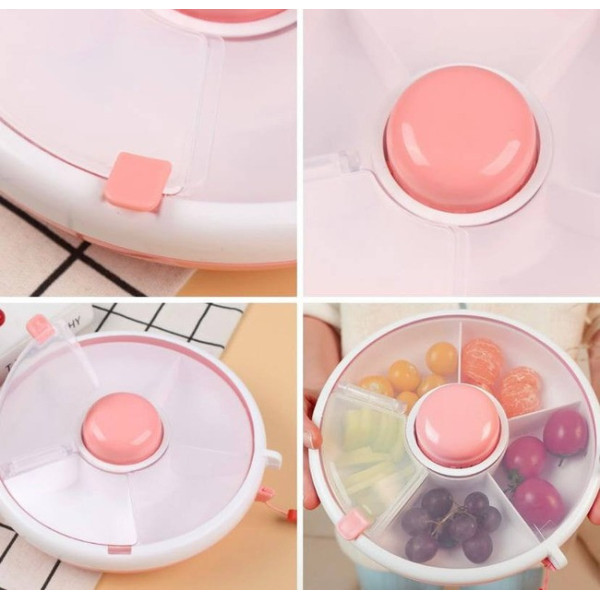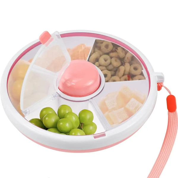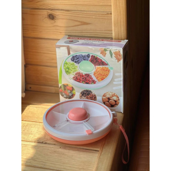 Вращающийся ланч-бокс AND 130 с 5 отделениями — это практичное решение для хранения и подачи перекусов, фруктов, орехов и снеков. Диаметр 18 см и высота 6 см делают его компактным и удобным для сумки или рюкзака.