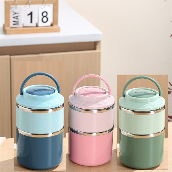 Ланч-бокс LY-1032 2-ярусный пищевой контейнер 1060 мл из нержавеющей стали 304 с изоляцией и ручкой