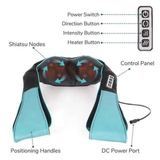 - Эффективно разминает мышцы шеи, плеч и спины, улучшая кровообращение и снимая мышечные зажимы.
