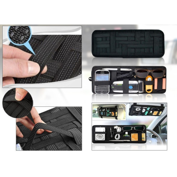 Конструкция органайзера очень проста. Это плотная пластина с большим количеством резинок разной длины, выполненных из прочного материала. Эти резинки позволяют надежно держать любые предметы - от пластиковых карточек до цифровых фотоаппаратов. Для начала использования органайзера его просто нужно повесить на солнцезащитный козырек, и все мелкие вещи будут у вас под рукой.