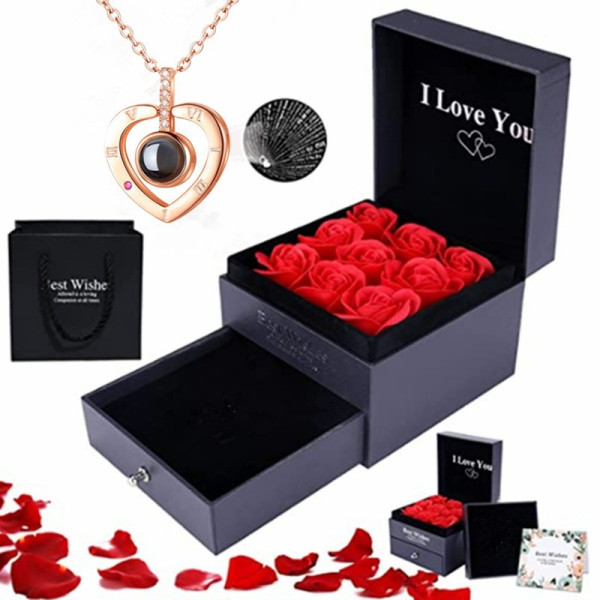 Подарочный набор роз из мыла Best Wishes в шкатулке с кулоном