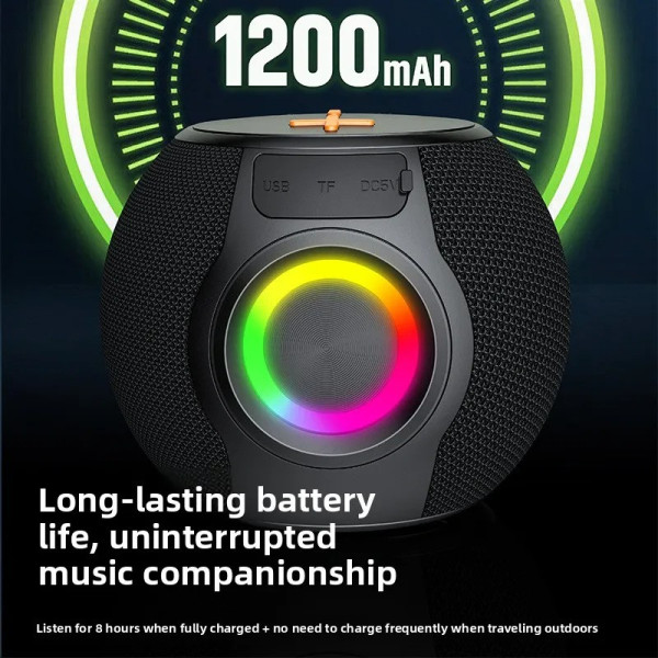Аккумулятор 1200 мАч обеспечивает до 8 часов непрерывной работы, а механические кнопки управления и тканевое покрытие корпуса делают устройство удобным и безопасным в использовании. Лёгкая, но прочная конструкция подходит для путешествий, активного отдыха, подарков и повседневного применения.