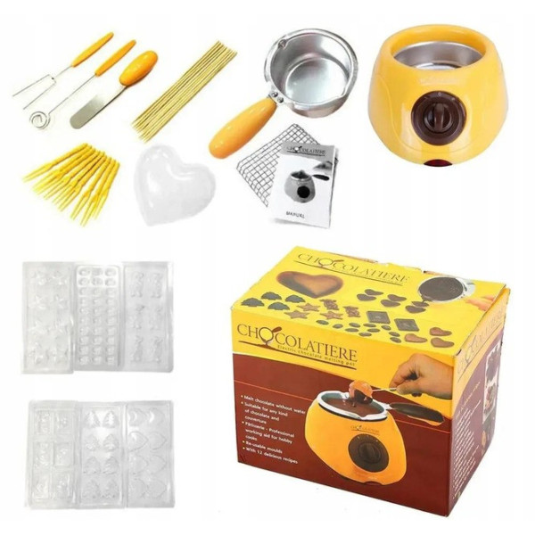 Прибор для приготовления шоколадного фондю Chocolate Fondue Set с формами и аксессуарами, 200 г, нержавеющая сталь