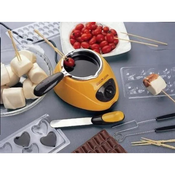 Прибор для приготовления шоколадного фондю станет эффектным украшением праздничного стола и отличным развлечением для всей семьи. Устройство подходит для растапливания любого вида шоколада — темного, молочного или белого. С его помощью можно готовить классическое фондю с фруктами, ягодами и зефиром, а также создавать домашние конфеты с разнообразными начинками.